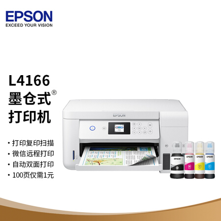 愛普生(EPSON)墨倉(cāng)式品質(zhì)款L4166(優(yōu)雅白) 微信打印/無(wú)線連接 打印復(fù)印掃描一體機(jī)